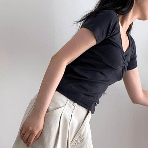 [신상오픈런]|KST7725|여자 여름 슬림핏 셔링 반팔 시원한 면 티셔츠_17986808_597559