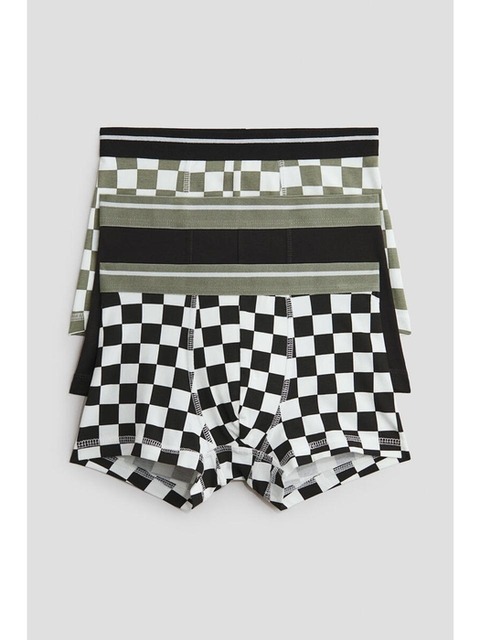 [에이치엔엠] 코튼 드로즈 3피스 세트 블랙/체크 1310243001