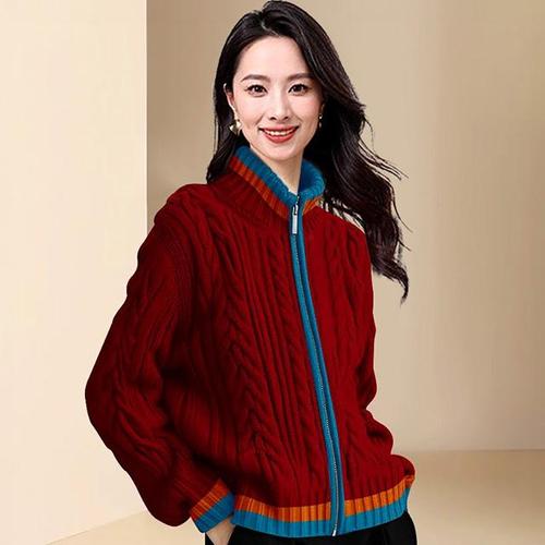 [드리다]여자 봄 가을 배색 브이넥 빅사이즈 오픈 니트 가디건 40-50대 미시 중년여성 엄마옷 하객 모임