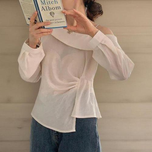 [신상오픈런]여성 긴팔 오프숄더 시스루 꼬임 블라우스 가을