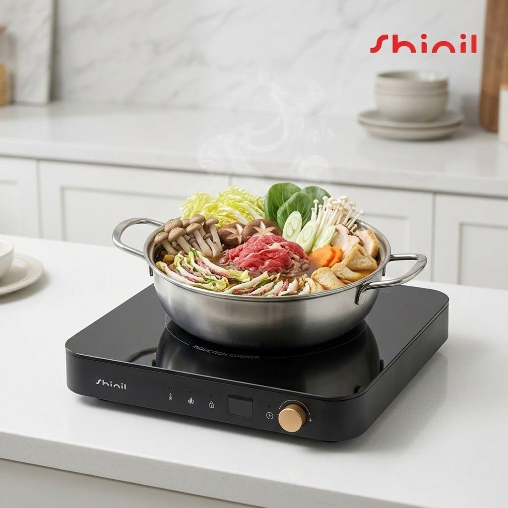 SHINIL 프리미엄 1구 인덕션 전기레인지 1인용 식탁용 휴대용 미니 SHL-M2000BK