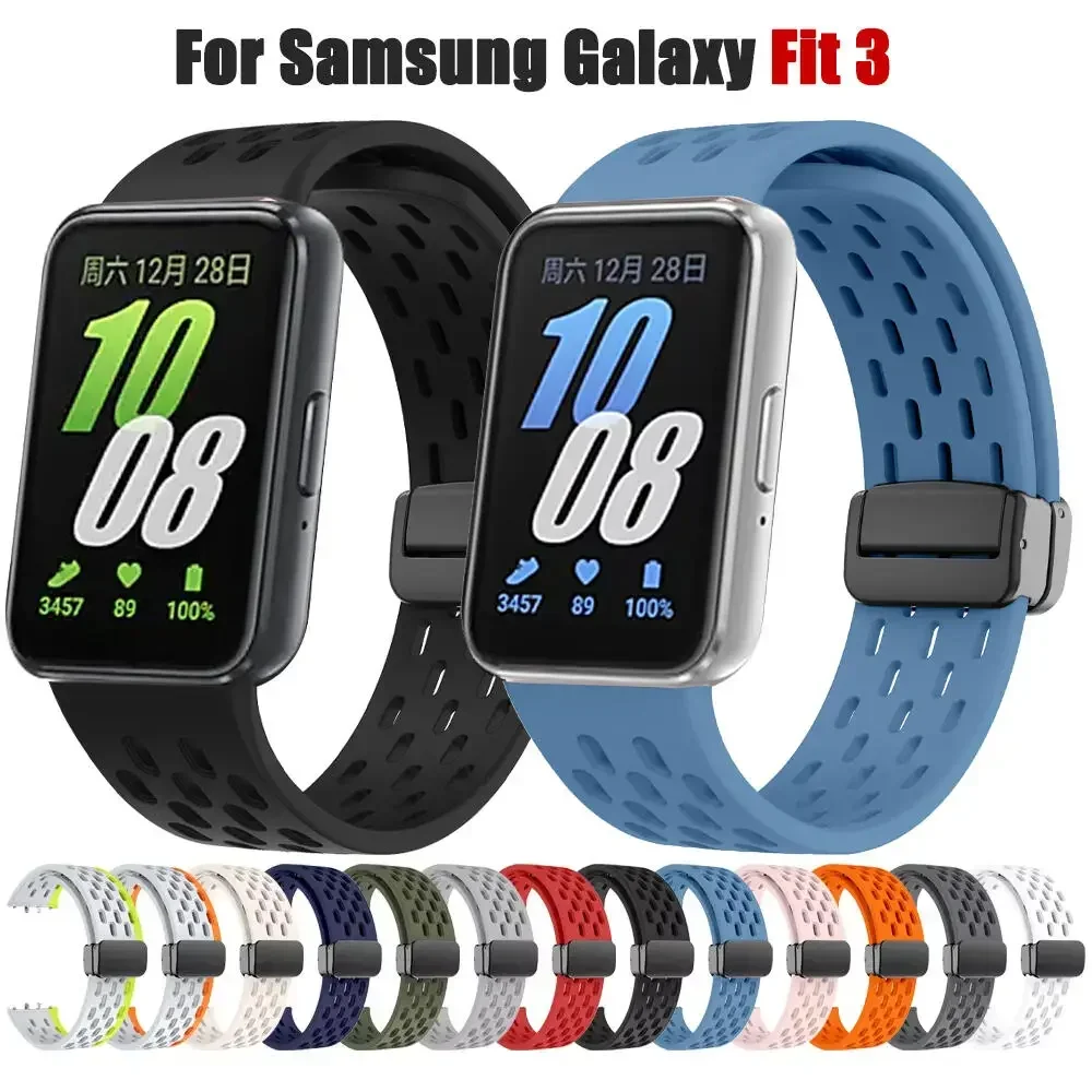 삼성 갤럭시 핏 3용 실리콘 스포츠 밴드, 갤럭시 핏3 스마트워치용 마그네틱 버클 팔찌