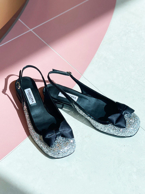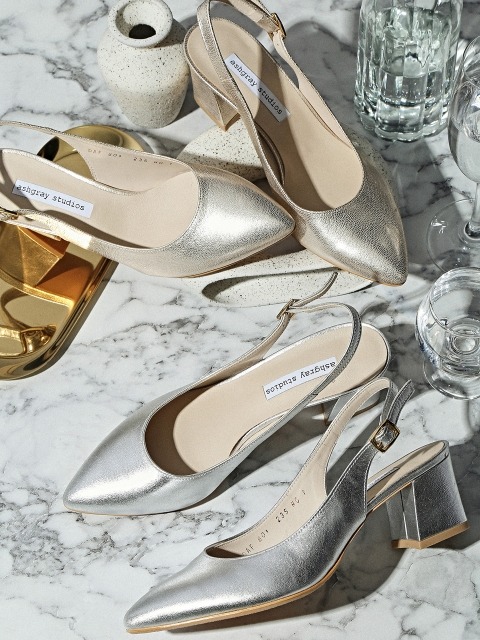 [애쉬그레이 스튜디오] 골드 실버 슬링백 힐