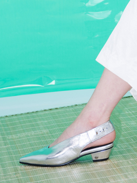 [신난다슈] 여성 슬링백 힐 2cm 스틸레토 플랫 슬링백 구두 펌프스 발편한 LO251147 실버