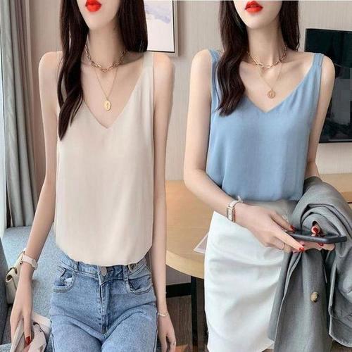 [셀러허브_여성트랜드패션]여성 실크느낌 슬리브리스 민소매 V넥 나시 이너
