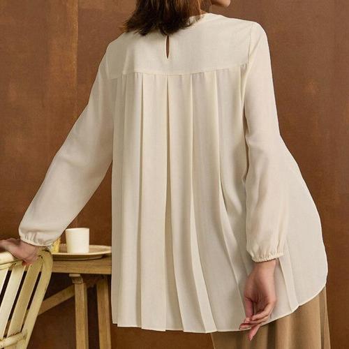 [퀸이즈][퀸이즈] 플리츠 벌룬 실크 라운드넥 블라우스
