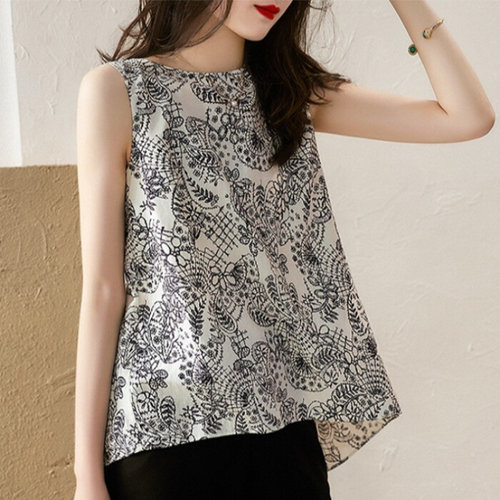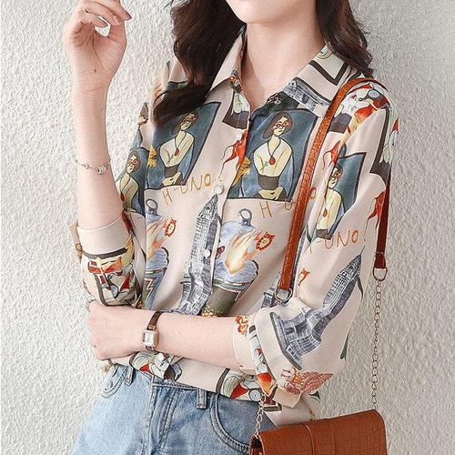 제로투올샵2 / 레트로 프린트 실크 탑 블라우스 사진색 M
