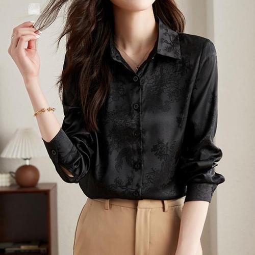지고다그 1+1 여성 새틴 실크 블라우스 긴팔 광택 셔츠 우아한 오피스룩 SX68461