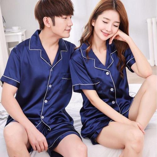 럭셔리 잠옷 정장 새틴 실크 잠옷 세트 커플 잠옷 캐주얼 가족 Pijama Lover Night Suit 남성 & 여성 플러스 사이즈 Pj 세트