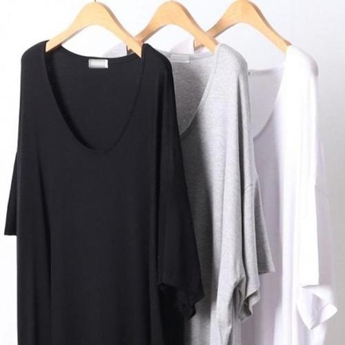 [나야홍]빅사이즈 411 실키브이넥여리티셔츠 DRAF084