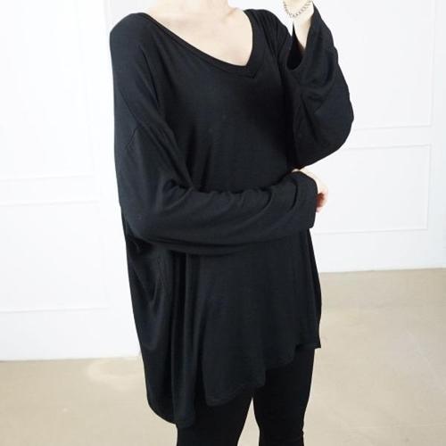 [엄지척]루즈핏 여성 브이넥 긴팔 무지 실키 티셔츠 빅사이즈_19558227_667501
