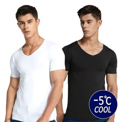 [엄지척]셔츠 이너웨어 브이넥 심리스 쿨 티 냉감 무봉제 반팔_20457787_667501