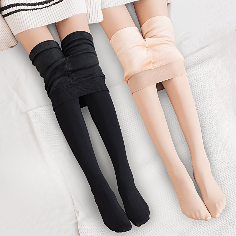 TEMU 2켤레 두꺼운 따뜻한 레깅스 | 여성용 하이웨이스트 스트레치 반투명 타이츠, 겨울용 원단, 심리스 디자인, 통기성, 데일리 필수템