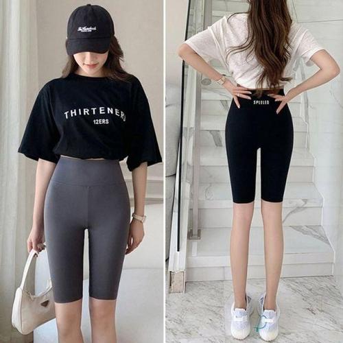 [아우트]레깅스 슬림핏 여성 심리스 반바지 5부