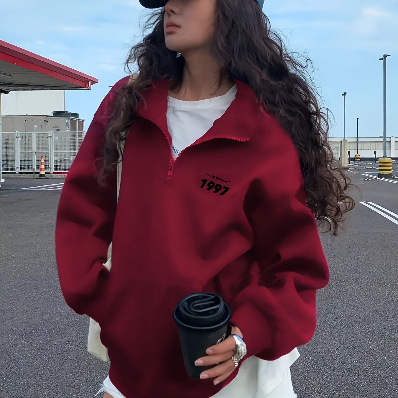 TEMU 여성 Y2K 레트로 레터 프린트 후드티 - 레드 긴팔 지퍼업 스웨트셔츠, 캥거루 포켓, 따뜻한 가을/겨울용 풀오버, 캐주얼 스트리트웨어 스타일