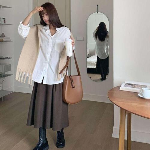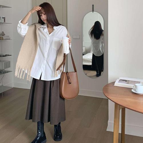 [옷자락] 여성 심플 코튼 원포켓 루즈핏 화이트 셔츠 남방