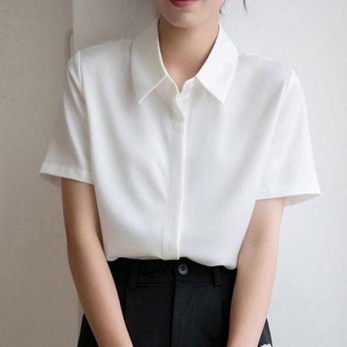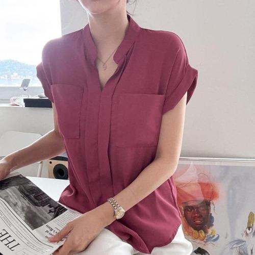 [셀러허브_여성트랜드패션]ONM 여성 일자핏 심플 카라 반팔 블라우스 출근 하객