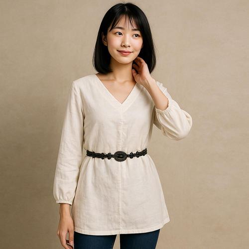 [옷자락]여자 심플 허리스트랩 찰랑핏 긴팔 블라우스