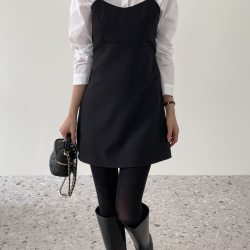 [신상오픈런]|CHD21DF|여자 목폴라 심플 티셔츠 울 뷔스티에 원피스 세트_19056322_597559