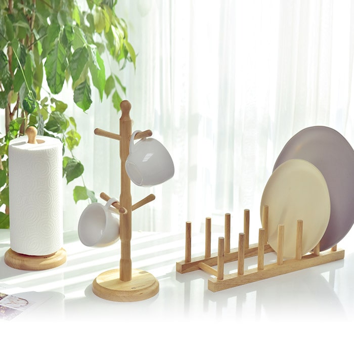 내추럴 우드 3종 세트 (접시꽂이 + 머그컵걸이 + 키친타올꽂이)