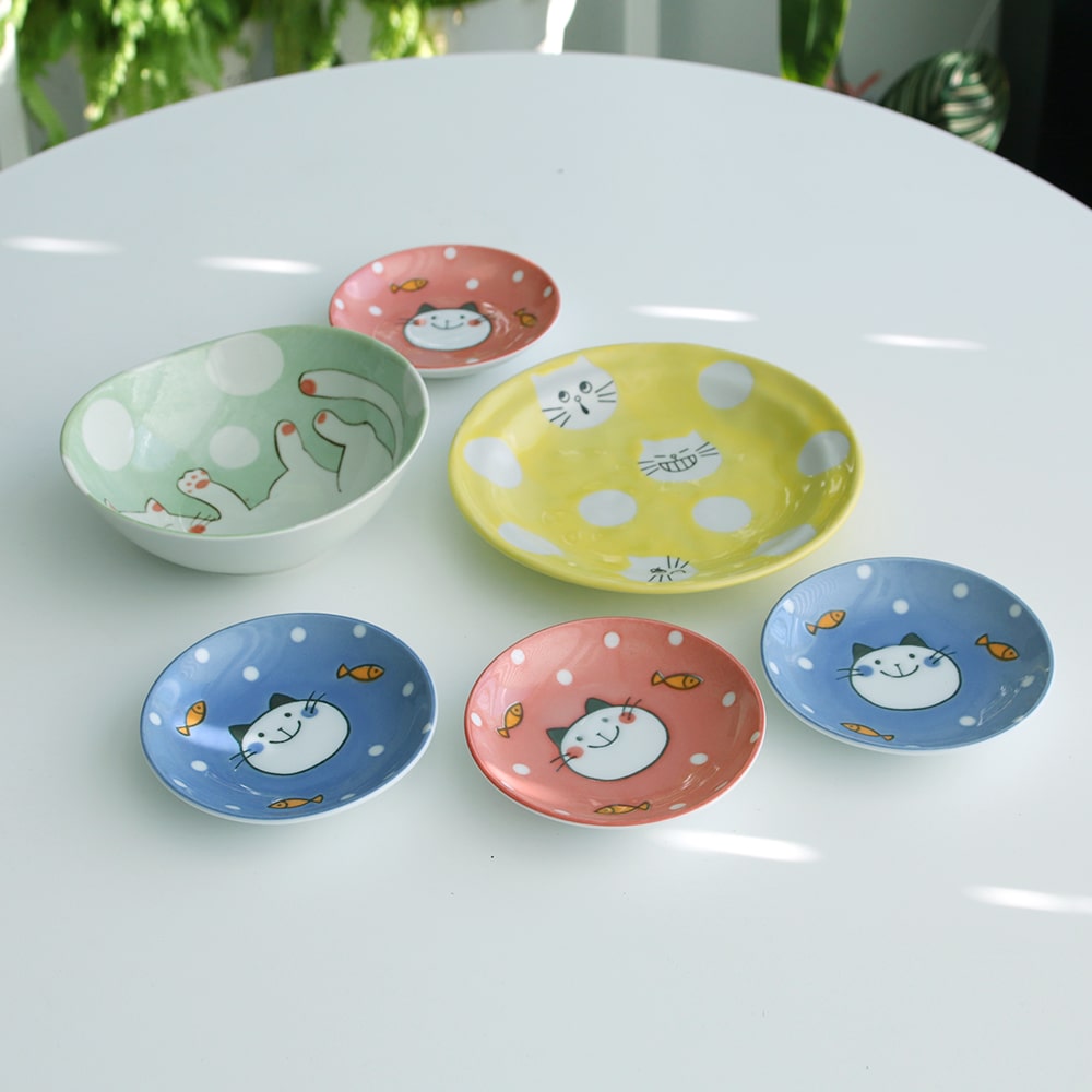 일본 고양이 그릇 도자기 앞 접시 빈티지 예쁜 나눔 접시 샐러드 볼 파스타