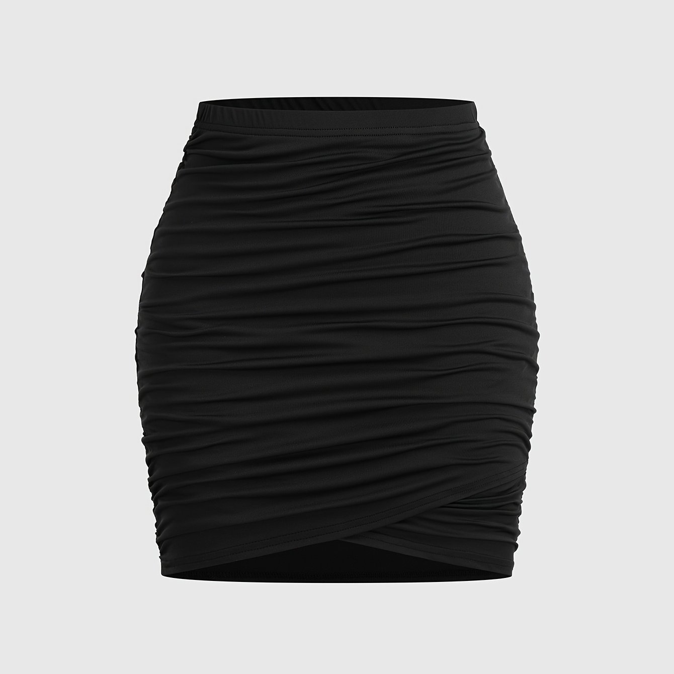TEMU 하이 웨이스트 바디콘 미니 스커트, 우아한 단색 컬러 러칭 스커트, 봄 & 여름, 여성 의류