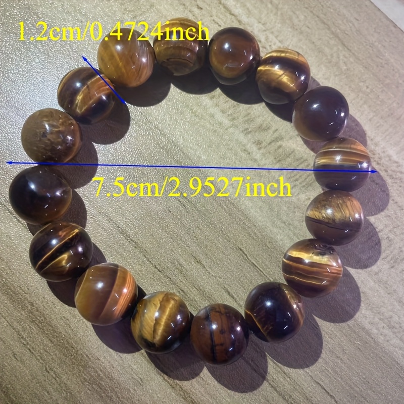 TEMU 1줄 직경 12mm, AAAAA 등급 천연 타이거 아이 스톤 비즈 팔찌 (16개 구슬) - 남녀 공용 부를 유혹하는 보석|팔찌|남자팔찌
