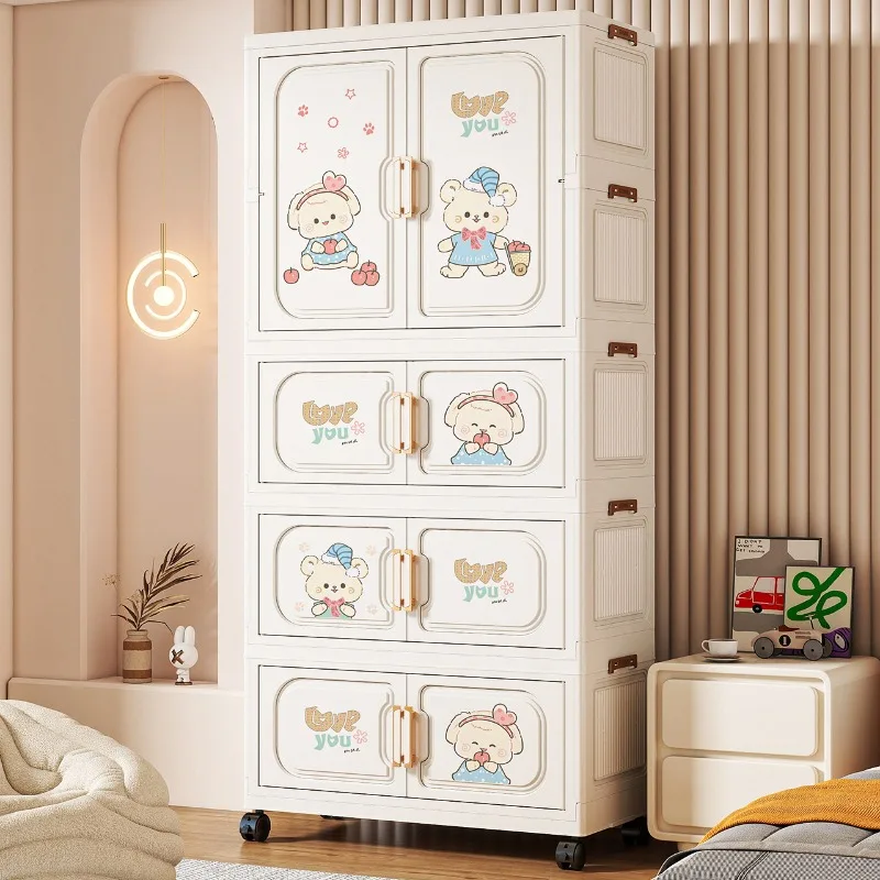 만화 캐릭터 어린이 옷장 접이식 플라스틱 옷 수납장 유아용 정리함 공간 절약 아기 옷장 흰색