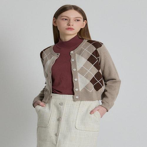 cammello 아가일 패턴 크롭 기장 니트 가디건