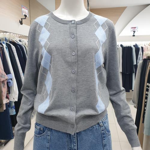 [나인식스뉴욕]데일리 아가일 라운드넥 긴팔 니트 가디건 (NQ2CK012L0)