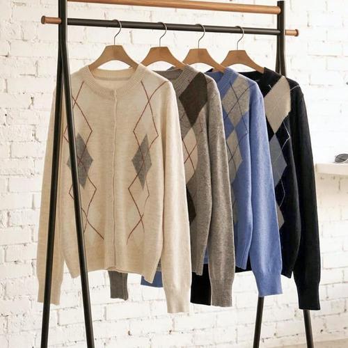 아가일 가디건 루즈핏 외출용 가을겨울 니트 캐시미어 (HSJ-WB3768A)