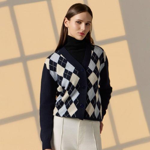 간절기 활용도좋은 여성용 아가일 패턴 브이넥 가디건