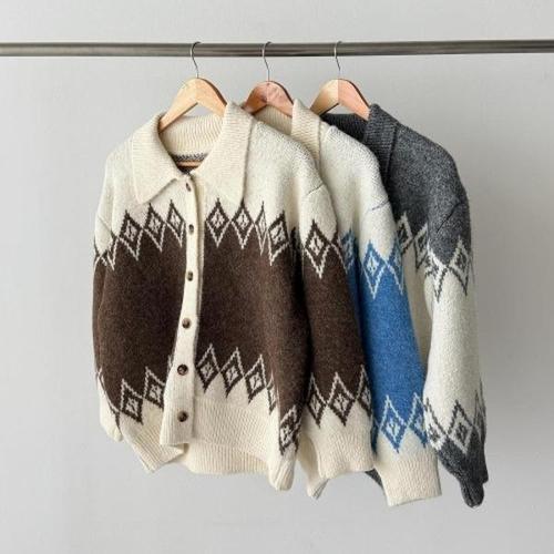 [아르아르][아가일/보들보들,따뜻!/데일리니트] 니콜 아가일 패턴 컬러 배색 니트 가디건