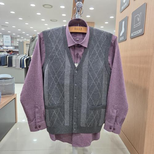 엘르옴므 sh06 엘르옴므 니트조끼 V넥 아가일 오픈조끼 TBEFR6534 TBEFR6534