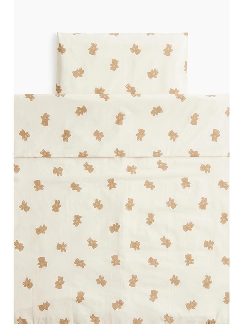 [에이치엔엠] 아기 침대 코튼 이불커버 & 베개커버 화이트/테디 베어 1241503001