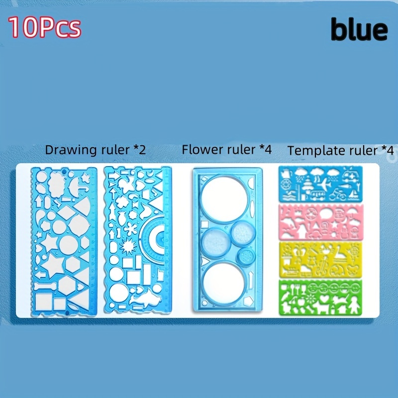 TEMU 창의적 학습과 미술 프로젝트를 위한 교육용 플라스틱 스텐실을 포함한 마법 꽃자 그리기 도구 세트 10개