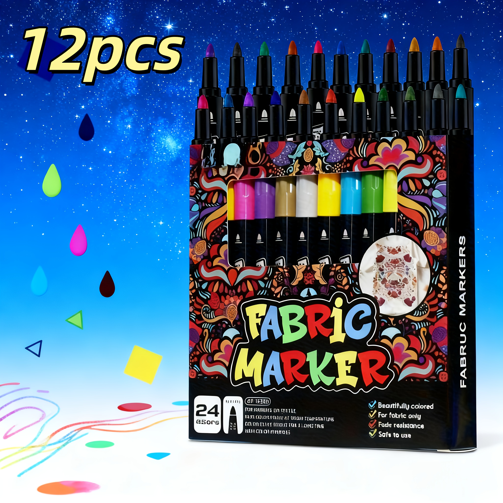 TEMU 12개 세트 워셔블 패브릭 마커, 얼룩 방지 멀티 컬러 손 그림 방수 및 퇴색 방지 양면 펜 (사업 및 식당용), 창의적인 공예, 생생한 색상, 미술 도구, 워셔블 잉크, 드로잉 펜, 재사용 가능한 미술 용품,