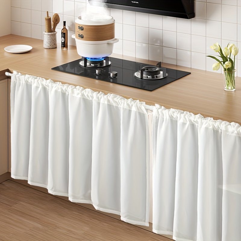 TEMU 1패널 반투명 창문 커튼 - 모던 주방 & 욕실용 로드 포켓, 캐비닛/TV 스탠드/현관용 빛 차단 프라이버시 커튼, 쉬운 세탁 폴리에스터 원형 드레이프 (화이트/중성색) - 작은 공간 확장 효과, 무줄 매달림, 부드러운 질감