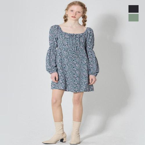 [원더플레이스][더블유스탠다드(W STANDARD)] (CU) 스퀘어넥 퍼프 리본 미니 원피스