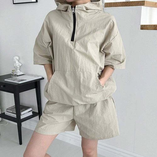 [라일리의류] Rly T 60W 여자 후드 아노락세트 커플 셋업 반팔