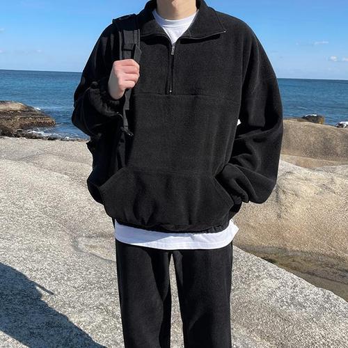 [엔비에이]남여공용 플리스 맨투맨 티셔츠 오버핏 빅사이즈 반집업 아노락 (N254TS034P)