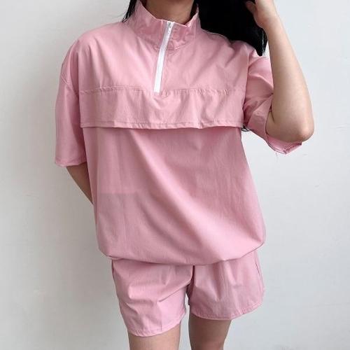 여자 반집업 아노락 여름 데일리 반바지 반팔 세트 WFLPTSM