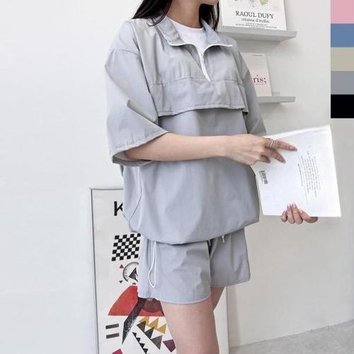 세트 아노락 트레이닝복 반집업 반바지 반팔 여자 WFLOZUR