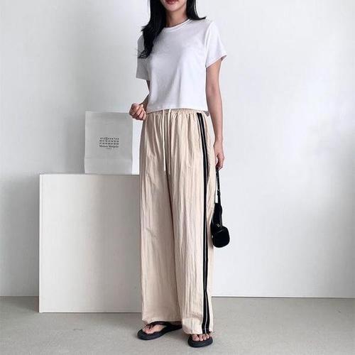 가비진 여성용 일자/조거 투웨이 무릎 핀턱 포인트 바스락 밴딩 와이드 트레이닝 팬츠 아노락 바지 빅사이즈까지