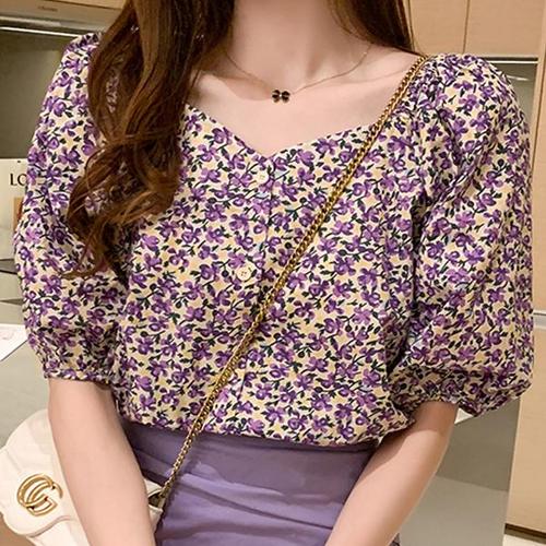 [드레스허그]라벤데이지 플라워 반팔 셔츠2color
