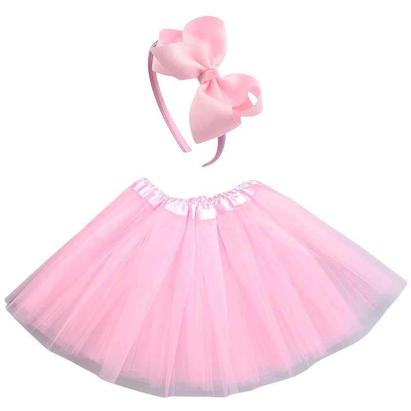 TEMU 귀여운 리본 머리띠, 3단 메시 튜튜 스커트, 2pcs/세트 의상 세트, 스커트 탄성 허리 3단 메시, 스커트 길이 30Cm (안감 없음), 발레 댄스 공연, 생일 파티에 적합|댄스복