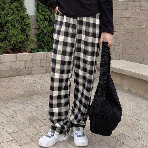 WL 겨울용 방한 뽀글이 기모 양털 일자핏 체크무늬 바지 WFNKI9D