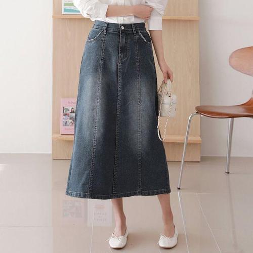 [유야]워싱 밴딩 데님 롱 스커트 청치마 키작녀 -SK0229H- 여성 봄