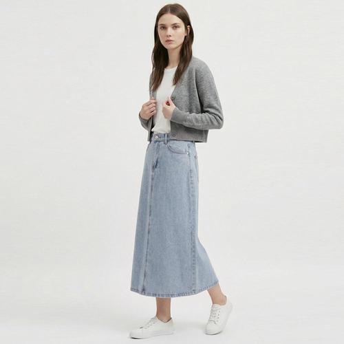 유아몽드 / H라인 롱청치마 데님스커트 와이드핏 앞트임 청 스커