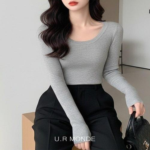 [유아몽드]여성 가을 겨울 신상 스쿱넥 U넥 긴팔 니트 티셔츠 슬